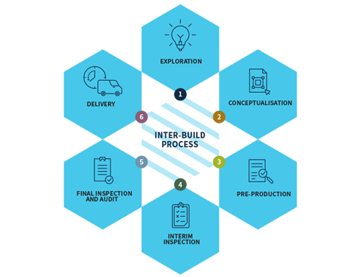 Our Inter-Build process is a six-stage structure that guides how we work with you to build your assets. It plays an important role in helping us achieve our goal of delivering your vehicles or equipment on time, to specification and without the need for further modifications. A summary of our process is below, with more information available by speaking with one of our Commercial Vehicle Specialists.